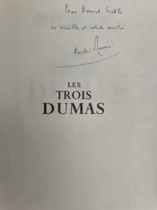 MAUROIS (André). Les trois Dumas. Paris, Hachette, 1957. In-8, broché, couv. rempliée (déchirure en queue du dos).