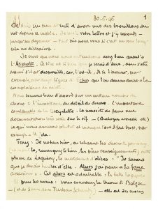 TINAN Jean de]. Lettre autographe signée, 30 juin 1896, [à Henri ALBERT ?] ;