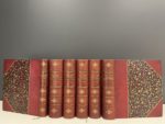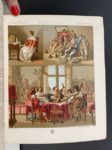 RACINET (Albert). Le costume historique. [...] Types principaux du vêtement et de la parure rapprochés de ceux de l'intérieur de l'habitation dans tous les temps et chez tous les peuples, avec de nombreux détails sur le mobilier, les armes, les objets usuels, les moyens de transport, etc. Paris, Firmin-Didot, [1876]-1888. 6 volumes petit in-4, dont 5 forts, demi-chagrin rouge à coins de l'époque, dos à 5 nerfs, auteur, titre, tomaison et fleurons dorés, filet doré aux nerfs, double filet doré aux plats, tête dorée, les vol. 2 à 6 montés sur onglets (qq. frottements modérées dont aux coins, auréole claire sur qq. ff. du t.5, sans gravité, rouss. éparses aux ff. de texte).