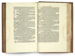 Venise, Hermann Liechtenstein, 27 février 1479. 10 8 10 #-8 6 In-folio de (297) ff. sur 298 [le dernier feuillet blanc manque] signés A , B-D , E , a-rfs-z&aa-ff8, gg : veau fauve, dos à nerfs richement orné à petit fer, pièce de titre de maroquin rouge, tranches marbrées (reliure de la fin du XVIIe siècle). PRECIEUX INCUNABLE VENITIEN : IL EST COMPLET, SAUF L'ULTIME FEUILLET BLANC, ET JOLIMENT RUBRIQUE. Fameux commentaire sur les épttres familières de Cicéron. Plaisant exemplaire, à grandes marges. Mors supérieur fendillé mais solide. Mouillure dans la marge extérieure et petites galeries de ver marginales. (Gesamtkatalog der Wiegendrucke, n° 13558 : l'ouvrage est classé sous Hubertinus.- British Library, Incunabula STC, n° ic00747015 : “Catalogued under Hubertinus by GW and CIBN ; however, Clericus is the author's family name ; he was not a cleric.”- Goff, H496 : 3 exemplaires aux Etats-Unis. Pas d'exemplaire en France).