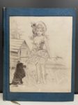 WILLETTE (Adolphe). Feu Pierrot. 1857-19 ?. Paris, Floury, 1919. In-4, cartonnage de papier bleu à la Bradel, pièce de titre chagrin brun, illustration contrecollée au plat sup., tête dorée, couv. sup. conservée (coins et coiffes frottés, transfert du front. sur le titre).