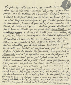Important texte sur l’art du décor, en réponse à une enquête, demandant « qu’aucune ligne, aucun mot ne soit ni jeté, ni adouci »…