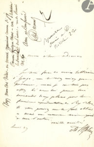 Jean Aicard, Adolphe Asseline (à Alex. Dumas, demande de places pour la 1ère de Ruy Blas ; quelques lignes a.s. de Dumas qui transmet à V. Hugo), Maurice Bouchor, Jules Claretie (5), Alphonse et Julia Daudet, Alexandre Desrousseaux (1888, sur ses chansons, à A. Pougin), Félix Fénéon, René-Marie Hermant, Marie Krysinska (poème sur le vin Mariani), Paul de Perceva, Henri de Régnier, Jean Richepin (3), Victorien Sardou, Aurélien Scholl, Albert Soubies, Laurent Tailhade, Louis Viardot, etc.
