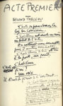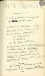 Manuscrit partiel de la comédie en 4 actes Le Comédien, présentant les 2 tableaux du premier acte : « Le Premier Tableau peut être supprimé à la représentation ».