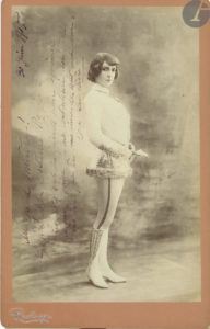 Belle photographie par Reutlinger de l’actrice en pied dans le rôle du Prince Orlovsky dans La Chauve-souris de Johann Strauss au théâtre des Variétés en 1904, dédicacée au docteur Samuel Pozzi (1846-1918) : « Au grand maître ! À mon cher Docteur Pozzi. Les mots sont insuffisants pour exprimer ce que je pense, je me contenterai donc de vous dire que je vous aime de tout mon cœur. Ève Lavallière 30 juin 1915 ».