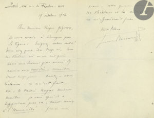 Jules RENARD (1864-1910). — L.A.S., Paris 19 octobre 1907, à Régis Gignoux ; 1 page et demie — In-8.