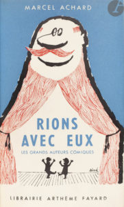 ACHARD (Marcel). — Rions avec eux. Les grands auteurs comiques. — Paris : Librairie Arthème Fayard, [1957]. — In-8, 199 x 125 : 328 pp., (2 ff.), couverture illustrée et couverture imprimée.— Demi-maroquin citron, dos à nerfs orné...