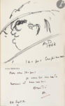 - un portrait de l’auteur dessiné par André Bernheim, dédicacé à Jacques Crépineau et accompagné d’un mot autographe,