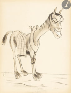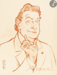 Jacques Crépineau a enrichi l’exemplaire de 3 caricatures de Bastia en petit format ainsi que d’un prospectus pour l’opérette Azor aux Bouffes-parisiens, illustrée d’une caricature de l’artiste. Usures au dos de la chemise.