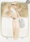 - 7 aquarelles originales non signées montées hors texte, figurant des personnages féminins en scène.