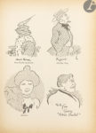 Album comprenant 30 planches de portraits-charges en couleurs de personnalités du monde du spectacle du début du XXe siècle, parmi lesquelles Denis d’Inès, Lucien Guitry, Gaby Morlay, Réjane, Maurice Donnay, Maurice Rostand, Berthe Cerny, Polaire, etc.