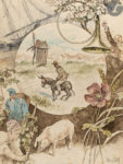 Jacques Crépineau a également ajouté une photocopie couleurs de l’affiche de la vente, deux notices de vente pour les dessins de Gill et de Pille, la reproduction d’une aquarelle découpée dans un catalogue de vente, et une reproduction sur papier couché du dessin de Salis.