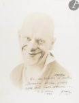 Comprend la plaquette de deux feuillets du film de Pierre Billon intitulé Au revoir monsieur Grock, sorti en 1950, dans laquelle a été placé une superbe photographie originale de Grock en clown, DÉDICACÉE À SACHA GUITRY (« Au plus célèbre comédien et auteur // Monsieur Sacha Guitry // avec toute mon admiration // le 4 février // 1924 // Grock »), 2 très belles aquarelles du costumier Charles Bétout, représentant 4 études de costumes, la partition d’Allo Grock illustrée d’une composition d’après Vertès, une brochure allemande sur Grock des Varieté-Festspiele, et la reproduction d’une caricature de Grock par Georges Bastia.