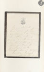 Exemplaire sur papier d’édition enrichi de 2 petites L.A.S. de la comédienne, adressées à son fils Maurice, montées en tête, d’une carte postale à l’effigie de Sarah Bernhardt, et de 3 reproductions photographiques de portraits de la comédienne, portant au verso le cachet « Photographie industrielle M. Rigal ».