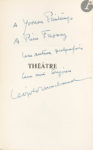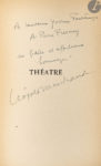 A Pierre Fresnay // qui, un triste soir // de 1940 // m’a ouvert les portes // du Théâtre // de // THEATRE // où j’ai mis le meilleur // de ma jeunesse, // en affectueux et // reconnaissant // hommage // Jean-François Noël // NOËL MCMLVII.