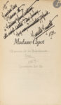 à Madame Yvonne Printemps // à Pierre Fresnay // dont aucun éloignement // de temps ne saurait affaiblir // l’affection que je leur // porte. // Léopold Marchand. - MAURETTE (Marcelle). Madame Capet. Paris : Albin Michel, [1938].  In-12, broché.