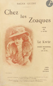 GUITRY (Sacha). — Chez les Zoaques. — Comédie en trois actes. - Le Kwtz. — Drame passionnel en un acte. — Paris : P.-V. Stock, 1907. — In-16, 188 x 120 : (4 ff.), 236 pp., couverture illustrée. — Demi-toile grise à la bradel, dos...