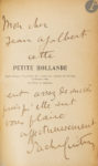 - Petite Hollande. Comédie en trois actes. Préface par M. Octave Mirbeau. Le Cocu qui faillit tout gâter. Petit acte en vers. Paris : P.-V. Stock, 1908. In-16, 186 x 118 : XII, 211 pp., couverture illustrée. Demi-toile grise à la bradel, dos lisse, non rogné, couverture conservée (reliure de l’époque).