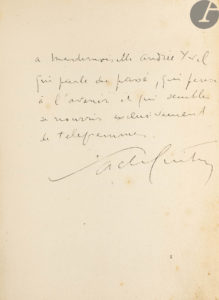 Exemplaire enrichi de cet envoi de l’auteur adressé à Paul Dufrény, son condisciple à la pension Mariaud, devenu son secrétaire en 1928 :