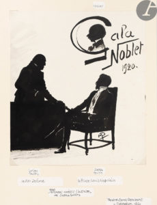 Jacques Crépineau a complété l’exemplaire avec le programme original de la pièce Comment on écrit l’histoire au théâtre Sarah Bernhardt, dédicacé par Georges Noblet à Mariette Sully, de deux dessins originaux de Maurice Perronnet dont l’un à l’encre (20 x 18 cm) représentant en ombre Lucien et Sacha Guitry dans la pièce, surmonté d’un portrait en buste de Noblet inscrit dans le G de « Gala Noblet 1920 », et l’autre représentant un portrait en buste de trois quarts de Noblet (10 x 9 cm), réalisé au crayon souligné à l’encre violette, daté de 1921. On trouve également 2 reproductions de portraits de Noblet par Forain et Abel Faivre.