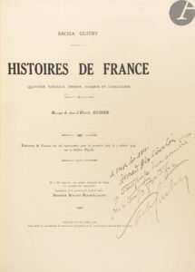 Superbe exemplaire en reliure triplée de Blanchetière, réalisée pour Bloch-Levalois qui l’a fait enrichir d’un tableau autographe de Sacha Guitry donnant la répartition des rôles du tableau VI au tableau X, et du programme du théâtre Pigale réenmargé au format du livre, dédicacé par Sacha Guitry et Yvonne Printemps à Bloch-Levalois.