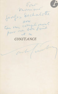 Pour // Monsieur // Georges Dechalotte // avec // tous mes compliments // pour son bon goût // et sa // CONSTANCE // Sacha Guitry