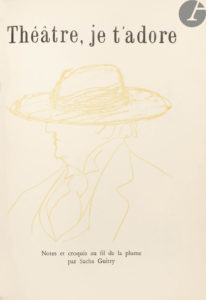 Édition originale collective de ce choix de textes sur le théâtre écrits par Guitry à différentes périodes de sa vie. Elle est illustrée de nombreux portraits dessinés par l’auteur, reproduits hors texte et à pleine page.