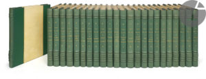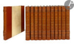GUITRY (Sacha). — [Œuvres].— Paris : Raoul Solar, 1949-1957. — 48 volumes — In-8 en 4 séries de 12 volumes, demi-chagrin orange (1ère série), vert (2e et 3e séries) et bordeaux (4e série) à larges bandes, filets dorés, dos à nerfs,...