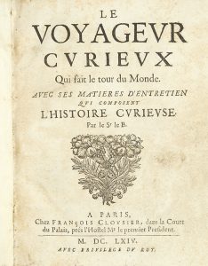[LE BLANC (Vincent)]. Le Voyageur curieux qui fait le tour du monde. Avec ses matieres d'entretien qui composent l'histoire curieuse. Par le Sr le B. Paris, François Clousier, 1664.