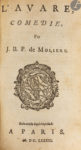 – L’Avare, comédie. Suivant la Copie imprimée à Paris, 1683. In-12, 108 pp., 1 planche.