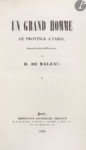BALZAC (Honoré de). — Un grand homme de province à Paris, Scène de la Vie de Province. — Paris : Hippolyte Souverain, 1839. — 2 volumes — In-8, 208 x 131 : 354 pp., (1 f.), couverture imprimée ; 354 pp., (1 f.), couverture...