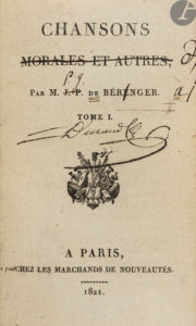 Cette édition fut poursuivie et 9 chansons furent condamnées. Béranger assura seul la responsabilité de l’impression et de la vente.