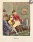 - suite libre de 20 lithographies originales de Henry Monnier, aquarellées à l’époque, portant le titre des chansons correspondantes,