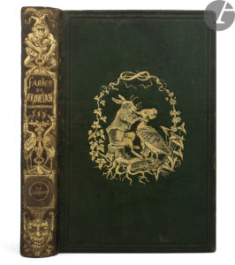 Exemplaire en maroquin vert de l’éditeur, arborant sur les plats et le dos des fers spéciaux directement inspirés de l’illustration de Grandville, condition des plus rares.