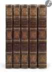 x 148 : (2 ff.), viij, 398 pp., 2 planches ; (2 ff.), 443 pp. mal chiffrées 243, 2 planches ; (2 ff.), 452 pp., 2 planches ; (2 ff.), 470 pp., 2 planches ; (2 ff.), 468 pp., 2 planches. — Demi-maroquin parme à coins, dos à nerfs orné de motifs dorés et mosaïqués, non rogné (Thouvenin).