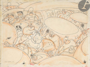 Un des 275 exemplaires numérotés de 76 à 350 (n° 129), enrichi d’un dessin original signé de Gus Bofa, 240 x 315 mm.