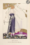 - 4e fascicule - 1920 : 20 feuillets (textes d’Abel Hermant, Henri de Régnier, René Boylesve, Jean Hermanovits, G. de La Fouchardière, André de Fouquières, Juliette Lancret, illustrés de compositions en couleurs dans le texte de Brunelleschi, George Barbier, Garcia-Benito, Jean Dulac et Guy Arnoux), et 8 hors-textes (Le Baiser sur l’échelle de Brunelleschi, L’Eau de George Barbier, Le Soir de M. Stab, Vêtement de Sports de Barclay par Taquoy, Habillé par Barclay, Robe du soir de la maison Jenny par Brunelleschi, Robe du soir de chez Marie-Louise Barclay par Brunelleschi, L’Heure du bain par Vallée). Sans les 4 feuillets de réclames.