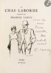 – L’Ami des filles… ou Chas-Laborde commenté par Francis Carco. Paris : [Ronald Davis], 1921. In-8, 264 x 191 : 26 pp., (3 ff.), couverture illustrée. Demi-chagrin bleu foncé, dos à nerfs, tête dorée, non rogné, couverture et dos conservés, étui (Ad. Lavaux).
