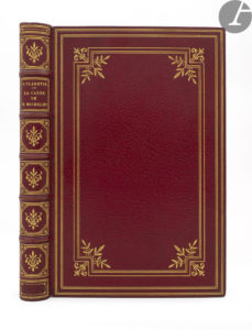 planches, couverture imprimée. — Maroquin rouge, double cadre de filets dorés sur les plats, feuillage doré aux angles sur le cadre intérieur, dos à nerfs orné, dentelle dorée intérieure, tête dorée, non rogné, couverture conservée (Marius Michel).