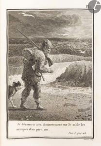 Entreprise par l’éditeur Charles Panckoucke et publiée par sa veuve en 1800, elle est illustrée en premier tirage d’un portrait de l’auteur gravé par Delvaux, de 3 titres gravés ornés d’une vignette différente selon les tomes, de 18 figures hors texte dont 15 gravées par Delvaux d’après Stothart et 3 par Dupréel et Deligon d’après Duvivier, ainsi que d’une Mappemonde des deux hémisphères Oriental et Occidental montrant l’itinéraire du voyage de Robinson, gravée par P. F. Tardieu. Les trois figures de Duvivier ne se trouvent pas dans tous les exemplaires