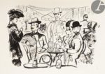 Édition originale de ces mémoires, illustrée de 48 compositions en noir dans le texte de DIGNIMONT. Un des 2500 exemplaires sur persan rose (n° 727), enrichi d’un très beau dessin original de l’artiste dédicacé, ajouté en tête, le nom du dédicataire a malheureusement été effacé, et de deux reproductions de dessins en couleurs de Dignimont, l’une montée en frontispice, et l’autre figurant sur une carte de vœux autographe pour 1961.