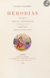 FLAUBERT (Gustave). — Hérodias. — Préface d’Anatole France. — Paris : A. Ferroud, 1892. — In-8, 248 x 159 : (2 ff.), XXXII pp., (1 f. blanc), 88 pp., (2 ff. dernier blanc), couverture illustrée. — Demi-maroquin rouge à coins,...