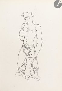 Il est enrichi de deux dessins érotiques au crayon non signés, à la manière de Cocteau, sur papier calque.