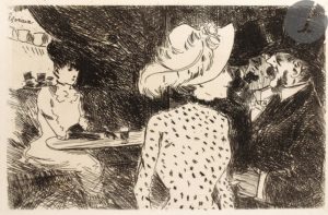 Exemplaire sur papier de Hollande comprenant en plus les 2 eaux-fortes de Forain qui avaient été refusées par Huysmans et qui étaient destinées au chapitre « Folies Bergère », que l’on ne trouve pas dans tous les exemplaires.