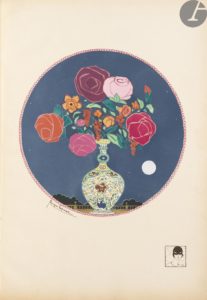 Elle comprend une composition en couleurs de Paul IRIBE sur le cartonnage, deux vignettes en noir de Georges LEPAPE, sur le feuillet de justification et sur le titre, et 7 superbes planches coloriées au pochoir, dont un bouquet de fleurs par Georges Lepape, tiré sur japon, 3 éventails par Paul Iribe et George BARBIER, et 3 modèles de fourrure signés des initiales CR.