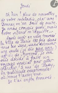 Exemplaire enrichi d’une L.A.S. de Pierre Louÿs adressée à Louis Loviot, jeudi (22 décembre 1910), 1 page 1/2 in-12, avec l’enveloppe, collée sur la première garde, ainsi que de 7 photocopies en noir ou en couleurs, montées ou collées, de compositions de Carlègle tirées de l’édition de 1924, et du programme de l’opérette d’Albert Willemetz d’après le roman de Pierre Louÿs jouée en décembre 1930 aux Bouffes-parisiens.