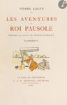 - Les Aventures du roi Pausole. Paris : Le Livre du bibliophile, G. & R. Briffaut, [1924]. — Grand in-8, 275 x 188 : (6 ff.), 300 pp., (2 ff.), couverture illustrée. Demi-maroquin vert à coins, filets dorés, dos lisse orné de motifs dorés et mosaïqués, tête dorée, non rogné, couverture et dos conservés (S. David).