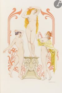 LOUŸS (Pierre) - RAY (Maurice). — Aphrodite. — Mœurs antiques. — Paris : L. Carteret, 1931. — In-8, 261 x 180 : (6 ff. 3 premiers blancs), VIII, 266 pp., (3 ff. 2 derniers blancs), couverture illustrée. — Maroquin orange janséniste,...