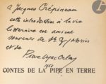 – Contes de la Pipe en Terre. Illustrations de l’auteur. Paris : L’Édition moderne, librairie Ambert, [années 1930]. In-8, 220 x 158 : 124 pp., (2 ff.), couverture illustrée. Bradel demi-toile rouge à coins, dos lisse, tête dorée, couverture et dos conservés (Ad. Lavaux).