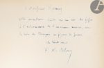 Édition originale illustrée de 7 compositions en couleurs hors texte de PASCIN. Un des 1085 exemplaires sur vélin blanc pur chiffon de Rives (n° 809), enrichi d’une L.A.S. de l’auteur, une page in-8, du 7 août 1925, dans laquelle il est question de Pascin, ainsi que d’une caricature de Mac Orlan dessinée et signée à l’encre par Siss.